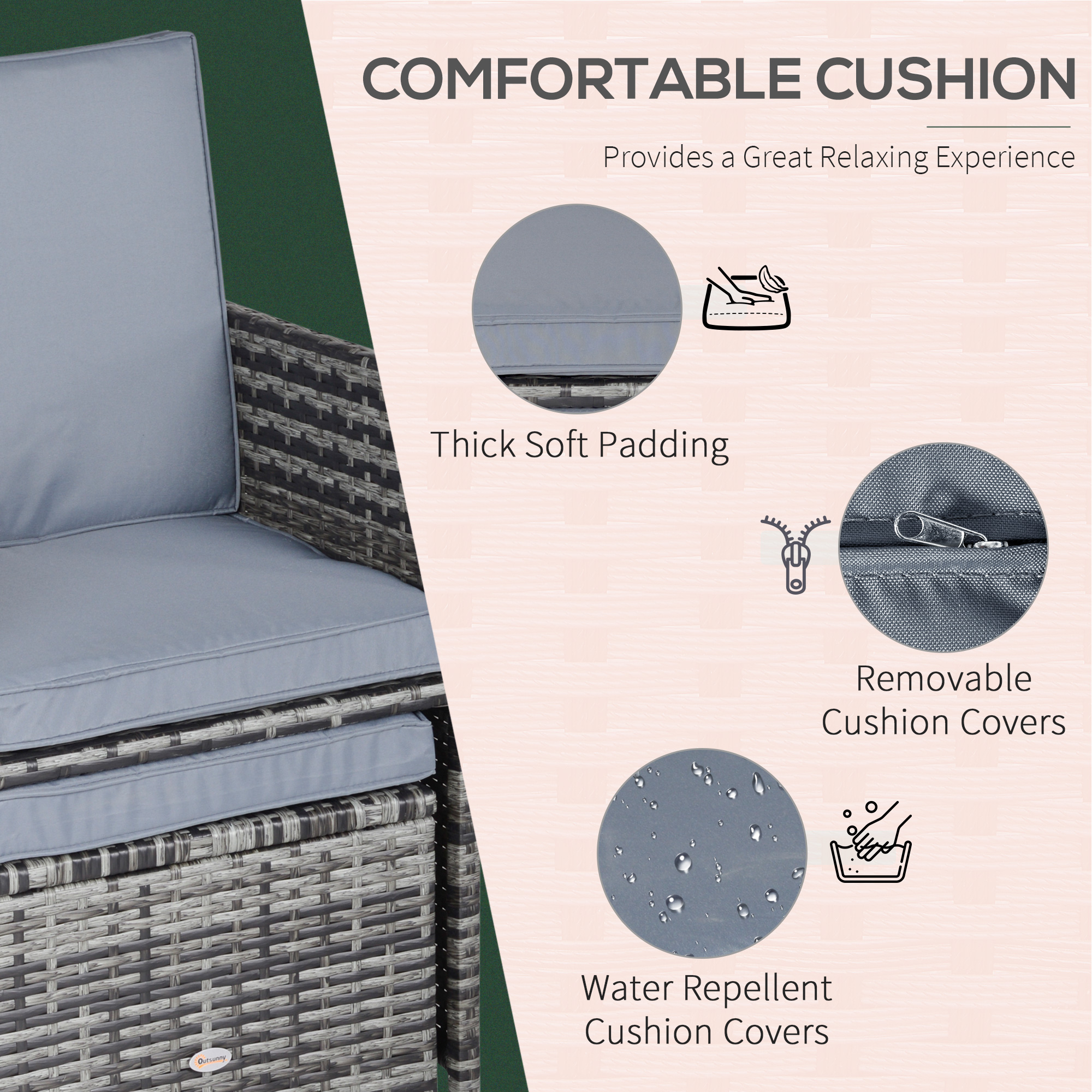 - Detachable zippered cushion cover made of polyester care machine washable