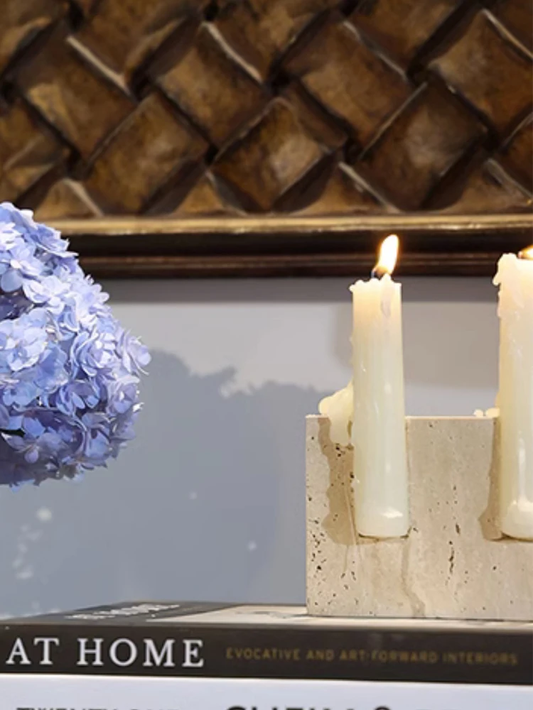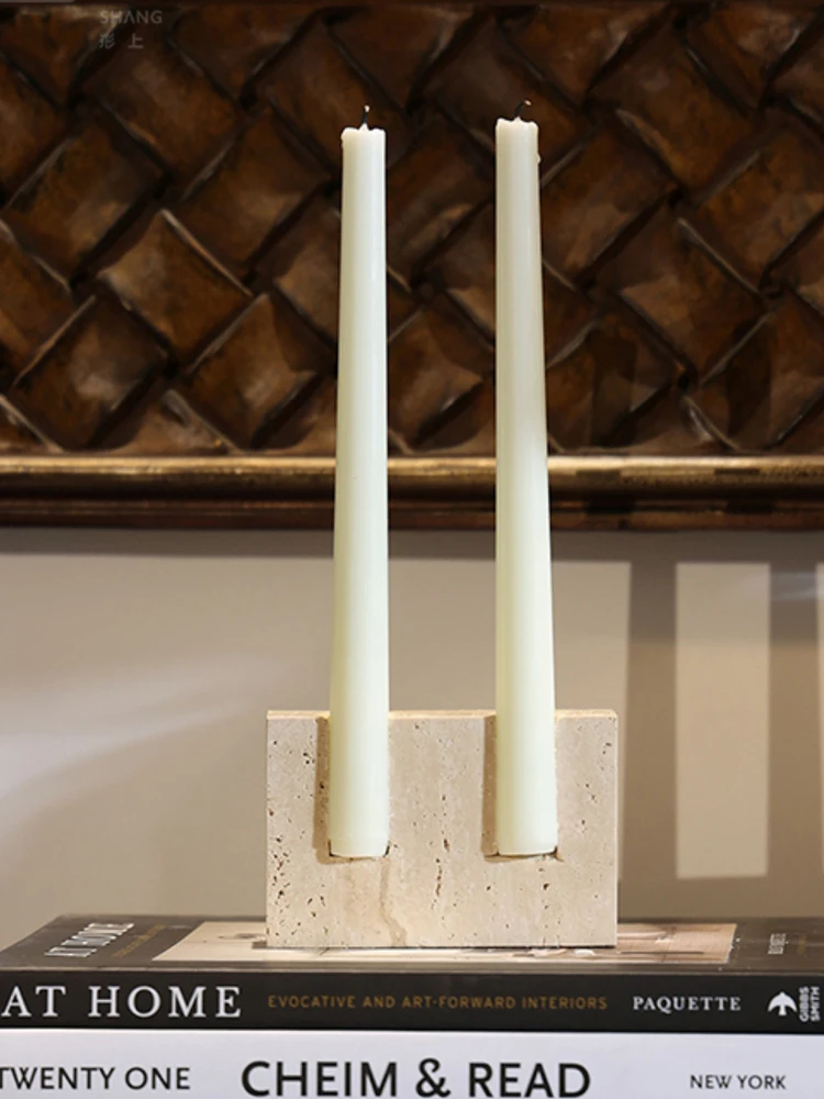 2 Holes Marble Candlestick Holder for Wedding Dinner Party Vintage Travertine Stone Taper Candle Holder for Table Centerpiece