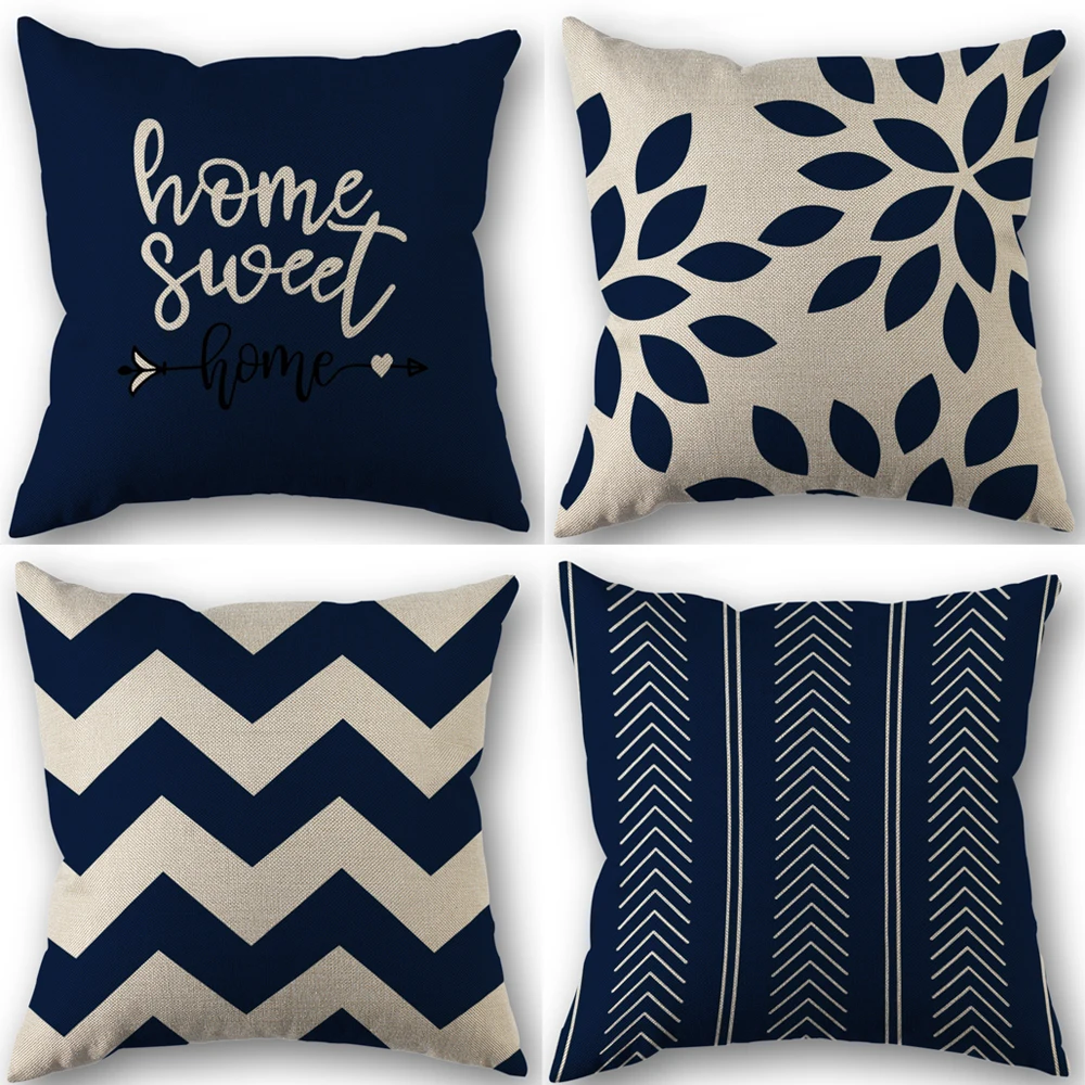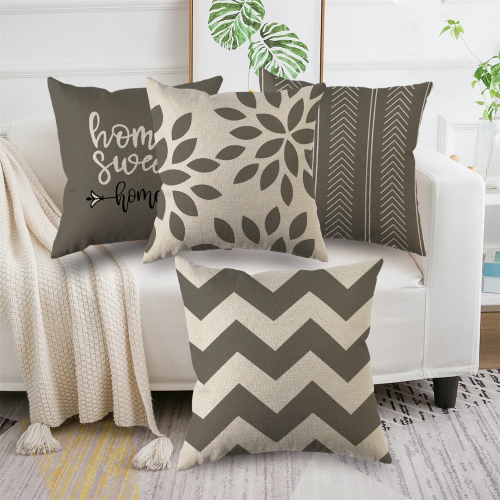 4er Set Kissen , Leinen Kissenbezüge 45x45cm - Einseitig Bedruckte Kissenhüllen für Wohnzimmer, Schlafzimmer & Sofa