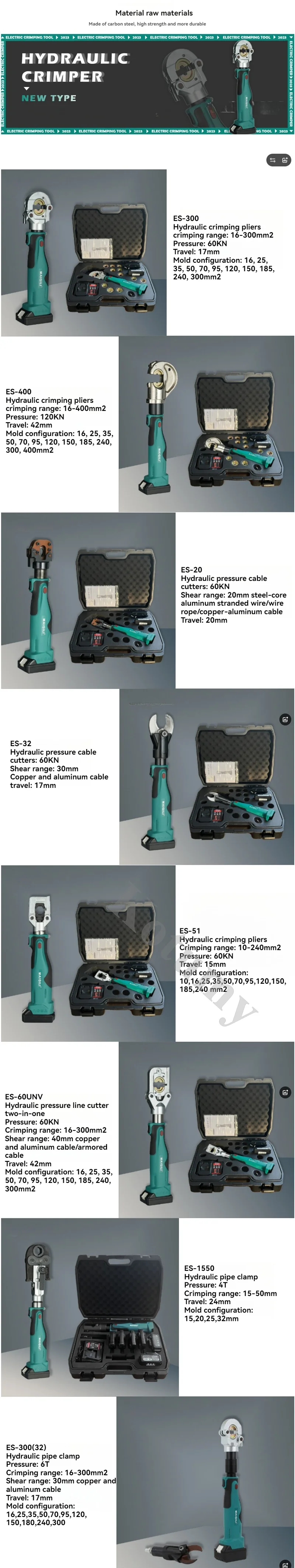 Entdecken Sie unser exklusives, batteriebetriebenes Hydraulikzangen-Toolkit, das speziell für das Crimpen von Kupfer- und Aluminiumkabeln entwickelt wurde. Effizient, komfortabel und perfekt für den häufigen Einsatz.