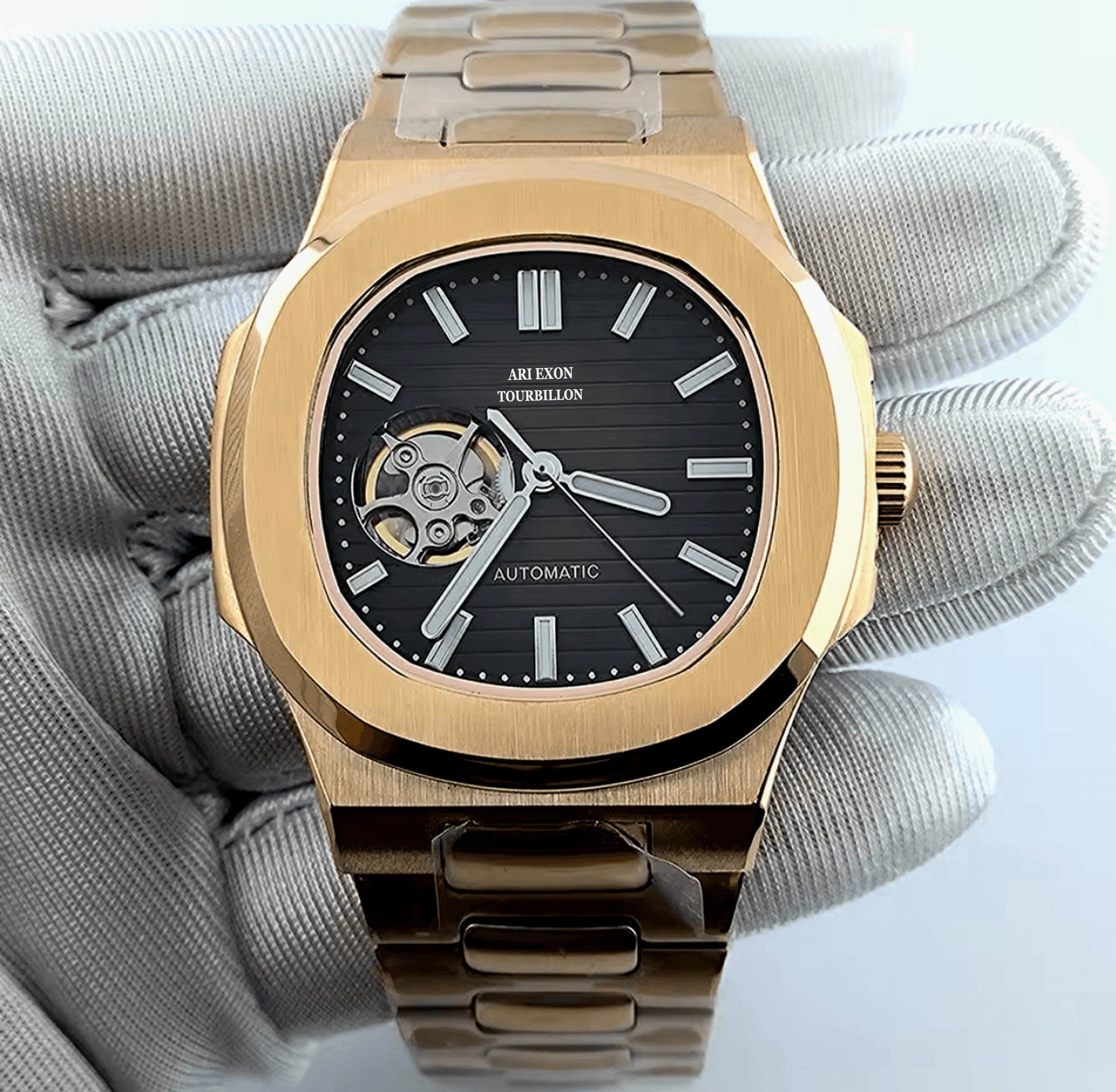 The ARI EXON Second Generation Tourbillon Watch is an exquisite fusion of luxury, precision, and artistry. Designed for the modern connoisseur, this limited-edition timepiece boasts a Japani Momentum Tourbillon, a starry sky skeleton dial, and sapphire crystal durability, making it an icon of sophistication and craftsmanship.