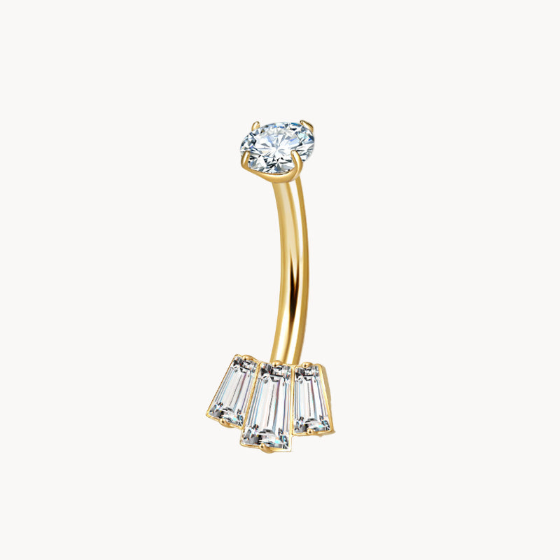 Bauchnabel Titan (ASTM F136) Bananabell 3er Baguette-Fächer – 1,6×10 mm – Innengewinde