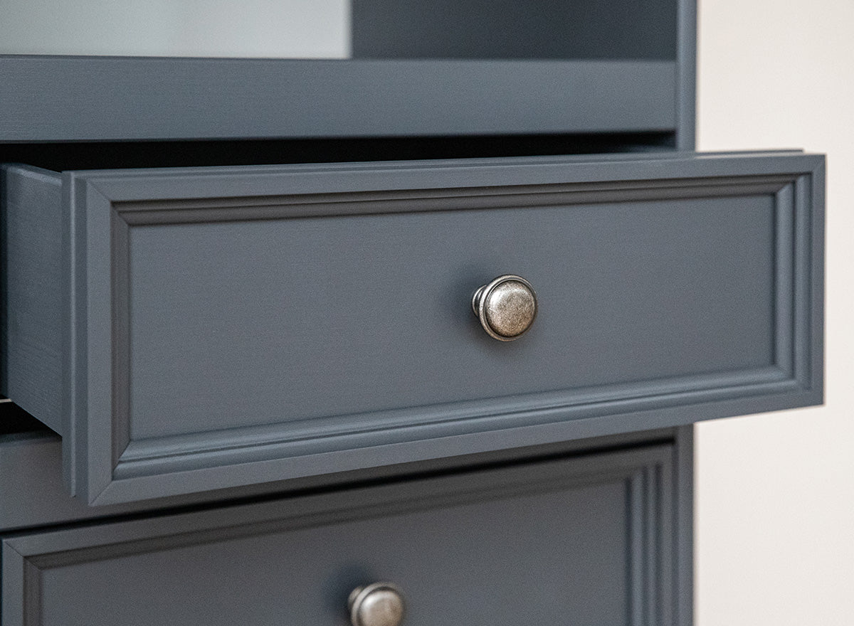 ✔ 5 praktische Schubladen – 2 kleinere oben für Schlüssel, Dokumente & Alltagsgegenstände, 3 große für Kleidung, Textilien oder saisonale Dekorationen