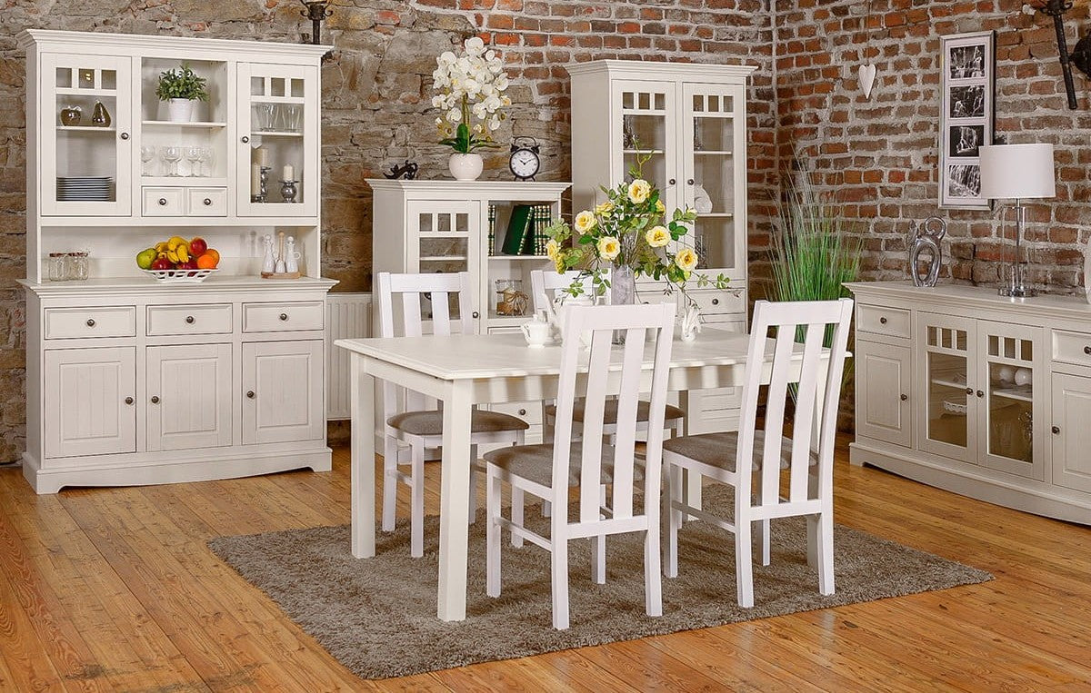 Der Bologna Elegante Esstisch aus massivem Kiefernholz ist die perfekte Wahl für stilvolle und funktionale Essbereiche. Sein klassisches Weiß und die natürliche Holzmaserung verleihen ihm eine elegante Ausstrahlung, die sich harmonisch in verschiedene Einrichtungsstile einfügt – von modern bis ländlich.