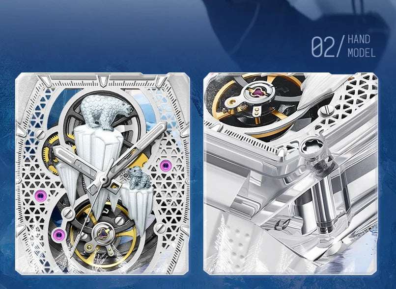 Bonest Gatti luxury automatic watch polar bear skeleton dial