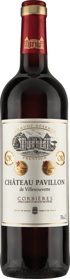 Grande Réserve Prestige – dieser Name ist nicht zufällig gewählt. Er ist imposant, bleibt im Gedächtnis und strahlt Würde aus, genau wie der Wein selbst und das geschichtsträchtige Château Pavillon de Villenouvette. Liebhaber südfranzösischer Spitzenweine kennen diesen Namen gut, denn im Herzen des Weinbaugebiets Corbières im Languedoc zählt dieses Château zu den ältesten Schlössern der Region.
