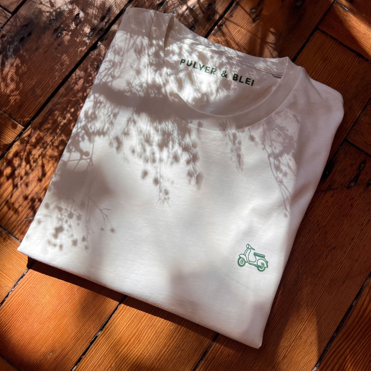 Aus weicher Bio-Baumwolle gemacht und super angenehm zu tragen. Der dezente Brustprint zeigt einen stilisierten Roller aus unserer Piktogramm-Reihe – charmant und ein bisschen rebellisch.
