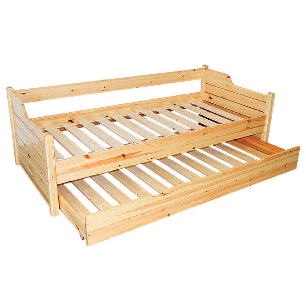 Das Gästebett empfehlen wir für Kinderzimmer, Jugendzimmer, in denen ein zusätzlicher Liegebereich immer nützlich ist. Dank seiner genialen Lösung kann das Bett innerhalb einer Sekunde in 2 Schlafplätze umgewandelt werden. Dafür muss nur die untere Einheit herausgezogen werden. Die Matratzengröße oben ist 90x200cm und im unteren Bereich 90x195 cm.