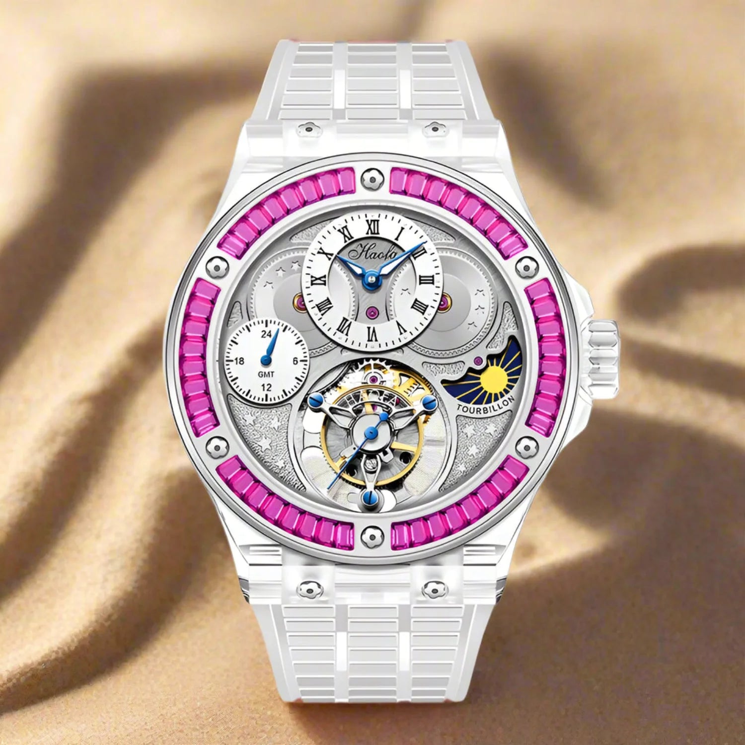 GMT Haofa tourbillon timepiece k9 crystal body sapphire lens day night
