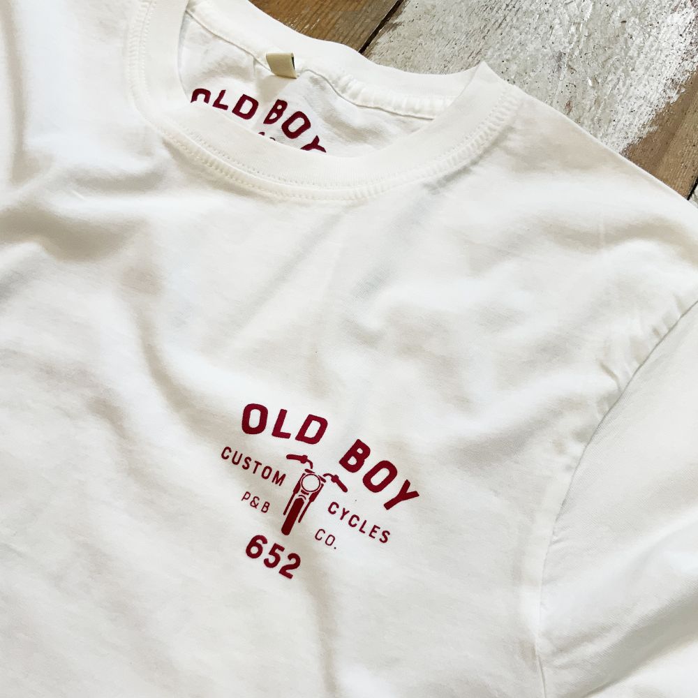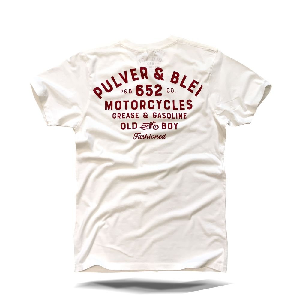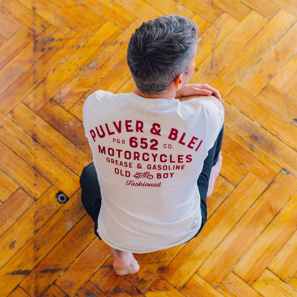 hey old boy - after this hard week, you remember the smell of grease, gas and adrenaline. so take your bike and enjoy your ride.Stückgefärbtes Vintage T-Shirt unserer "Old Boy Fashioned" Reihe. Echte Handarbeit für Echte Typen. Gedruckt auf 100% Used Wash Biobaumwolle.