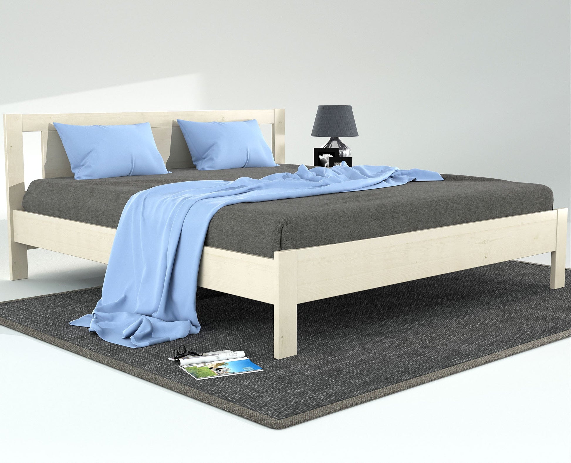 1 x Bettgestell wie abgebildet, ohne Lattenrost und Dekoration.