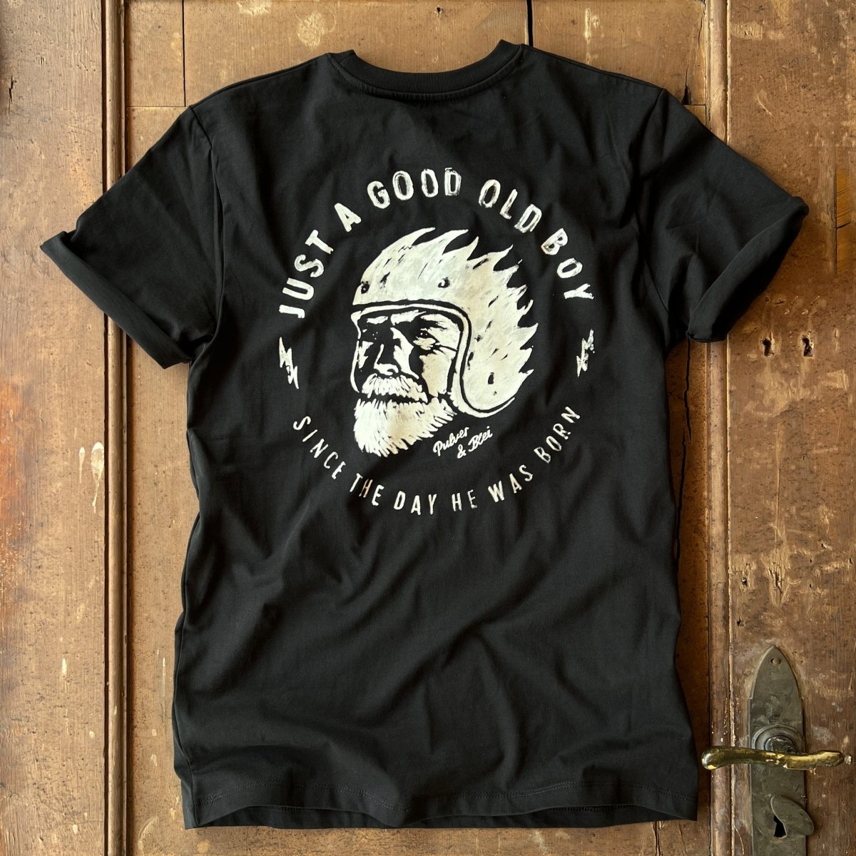 Just the good old boys, since the day they was born. Unser erstes T-Shirt unserer "Old Boy Fashioned" Reihe. Das handgemalte Motiv wird in mehreren Schritten von hand bedruckt und bekommt dadurch seine einzigartige Wirkung. Echte Handarbeit für Echte Typen. Gedruckt auf 100% Biobaumwolle.
