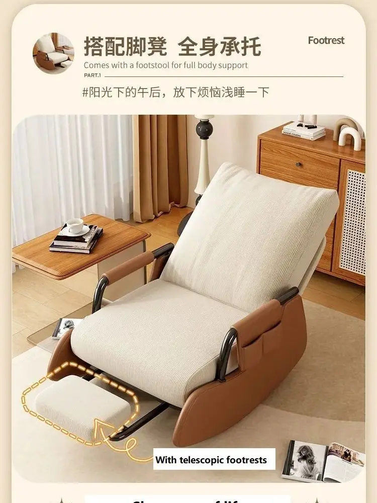 Lazy rocking chair, balcony leisure chair, living room, home lazy sofa, rocking chair, elderly sitting, comfortable luxury recli
