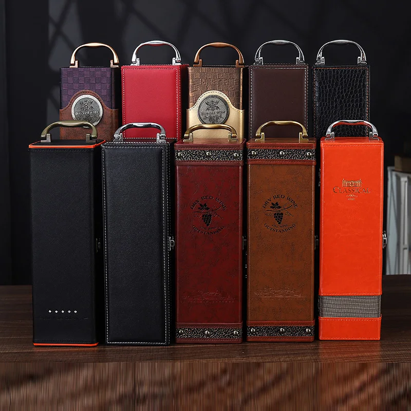 Edle Wein-Geschenkbox aus Leder – Klassische Einzel-Flaschenbox für We