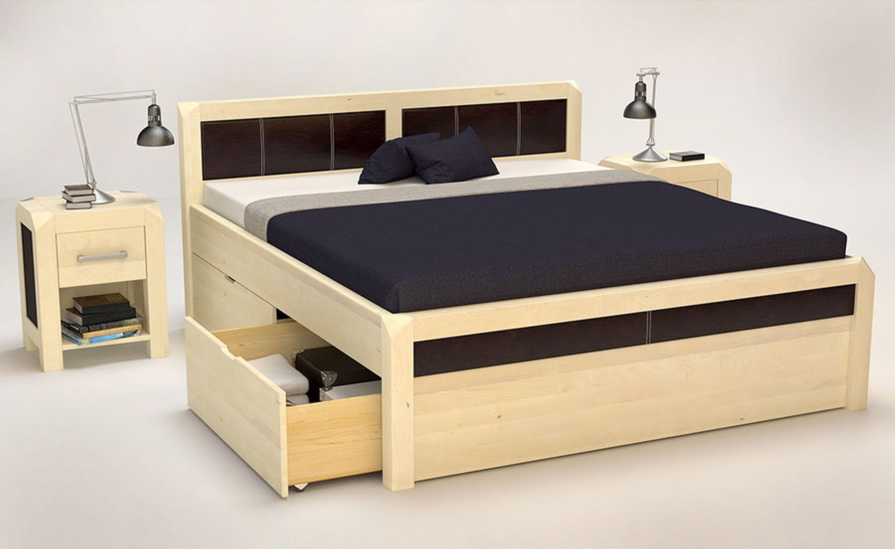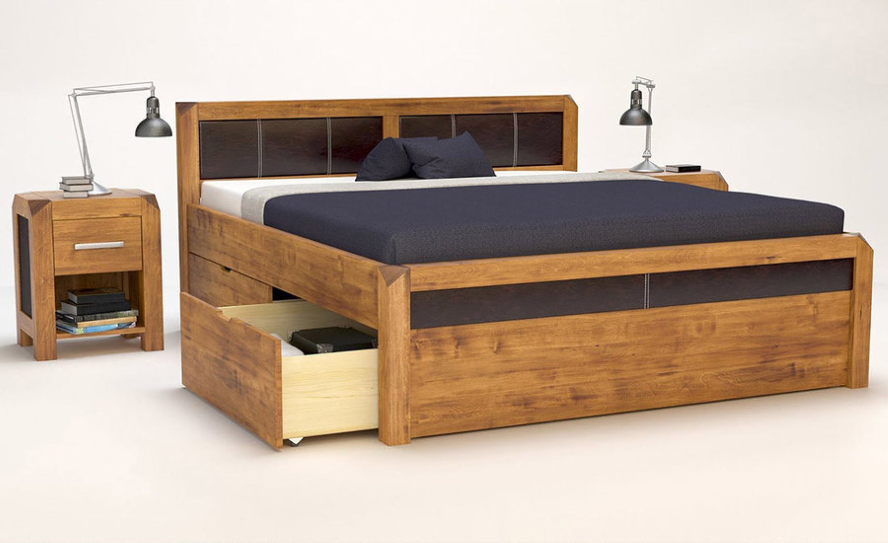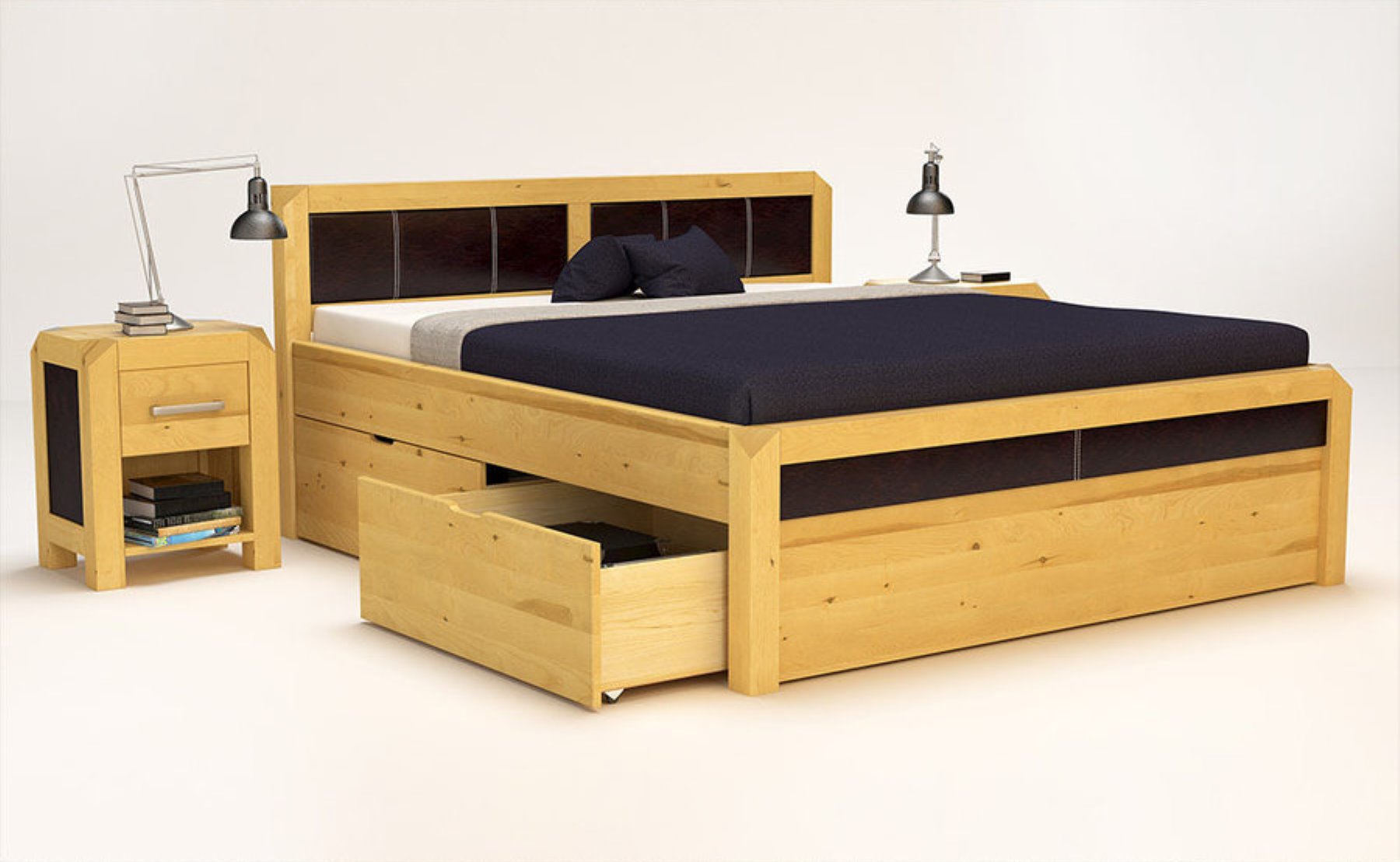MODENA-VERSO Massivholzbett mit 4 x Bettschubladen