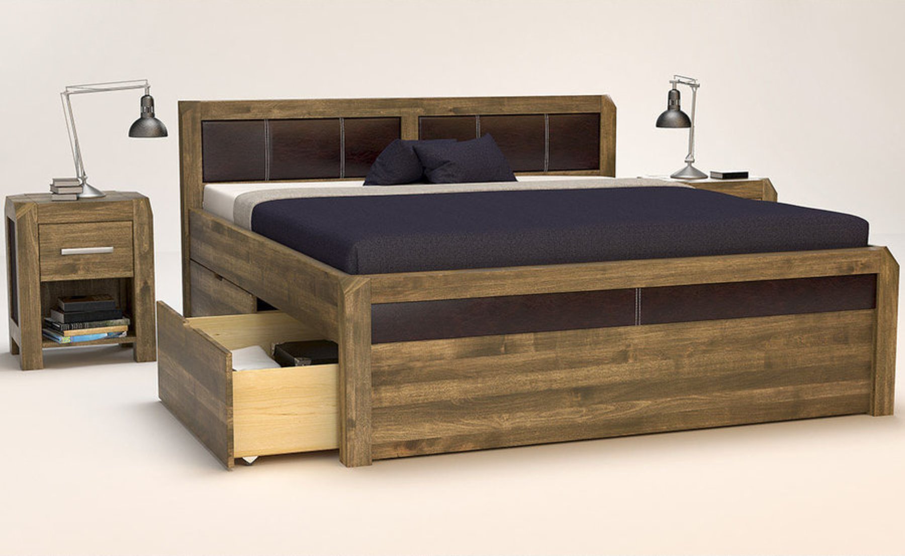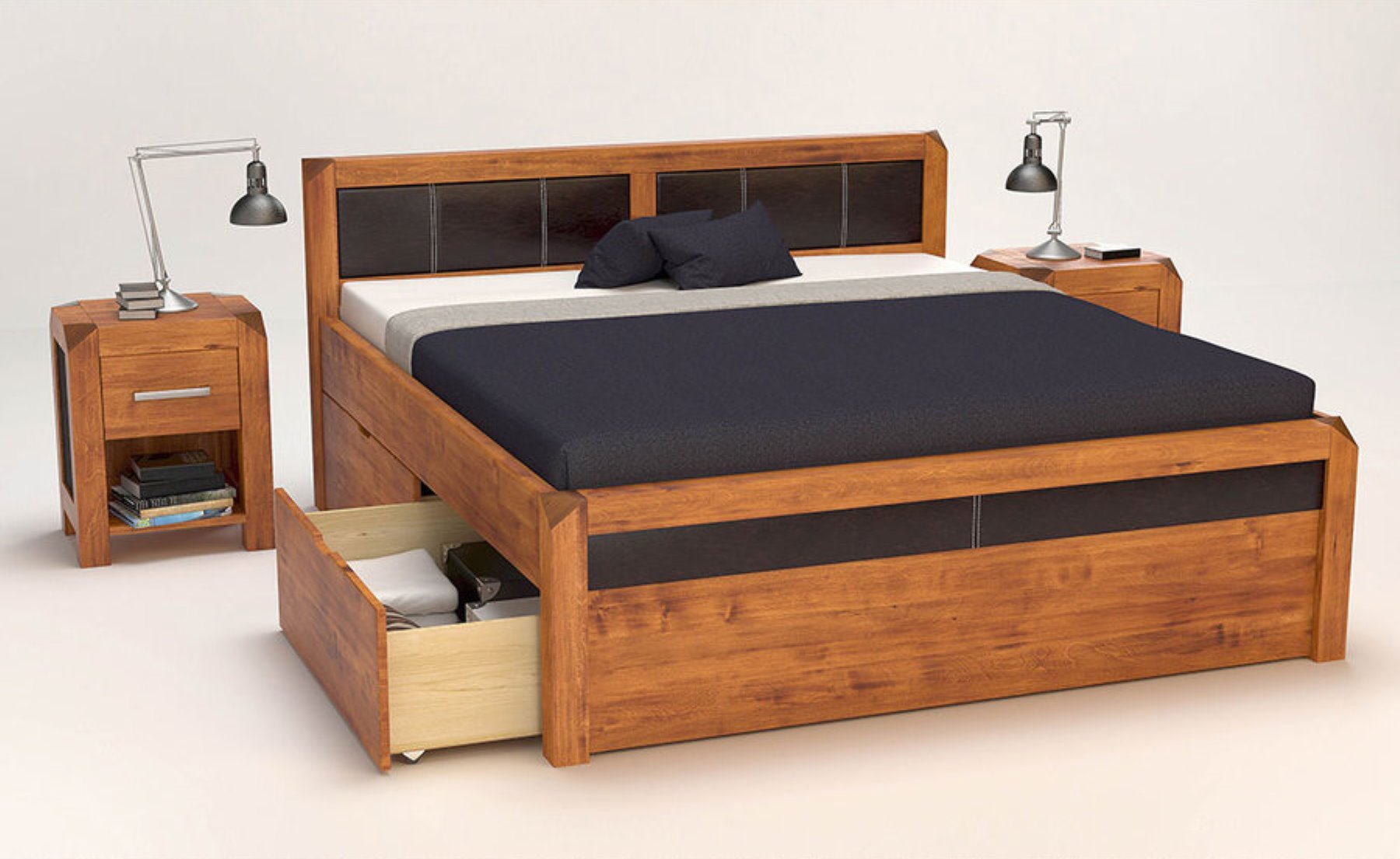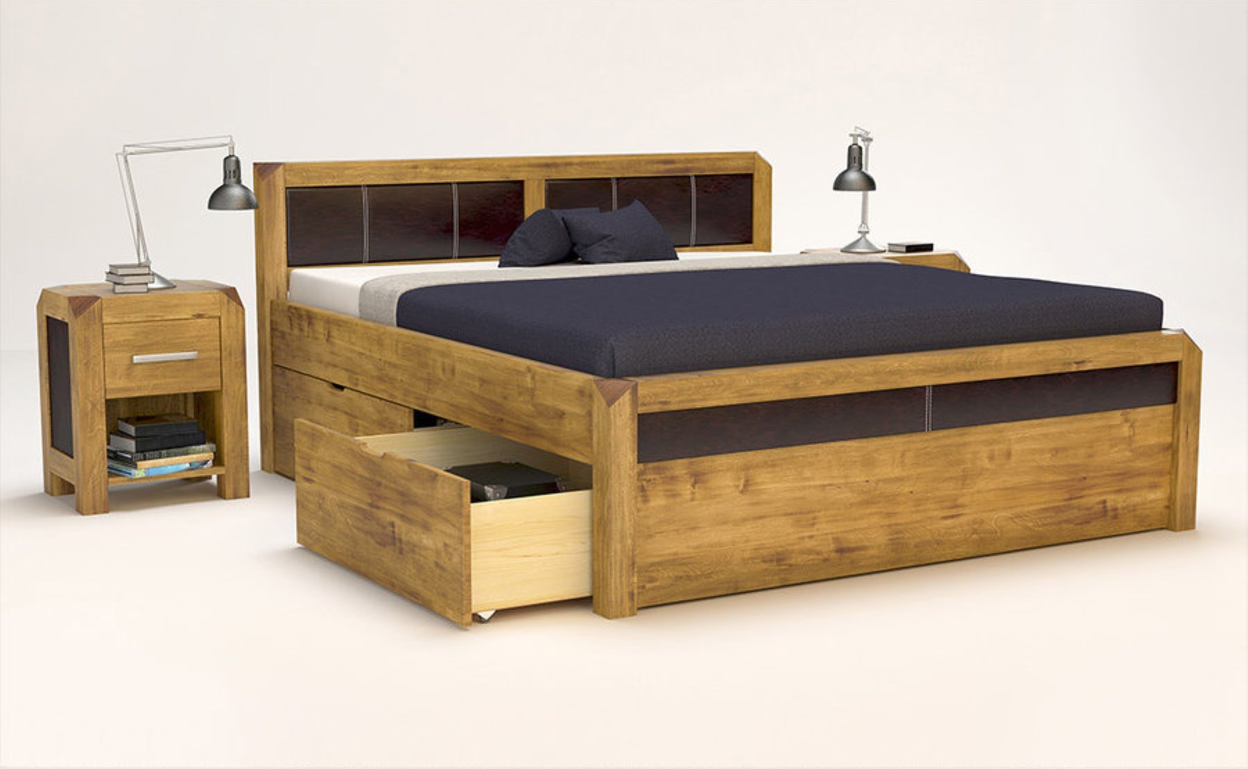 MODENA-VERSO Massivholzbett mit 4 x Bettschubladen