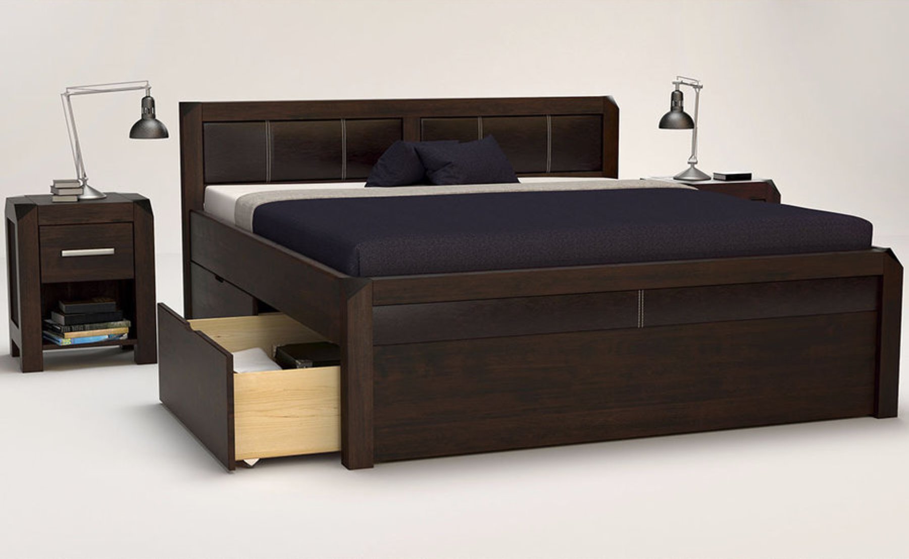1 x Bettrahmen mit Kopf und Fußteil, 4x Schubladen, 1 x Mittelplanke (ab einer Matratzenbreite von 120cm).