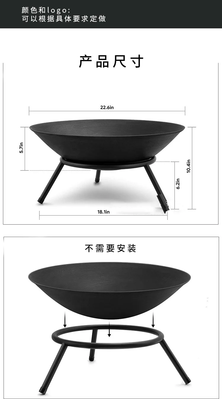 Steel Large Fire Bowl Cast Iron Firepit Modern Fire Pit Garden Fireplace Outdoor for Garden Patio Terrace Camping