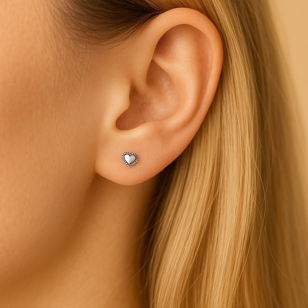 Ohrstecker aus 925er Sterling-Silber, Mini-Herzchen mit filigranem Ran