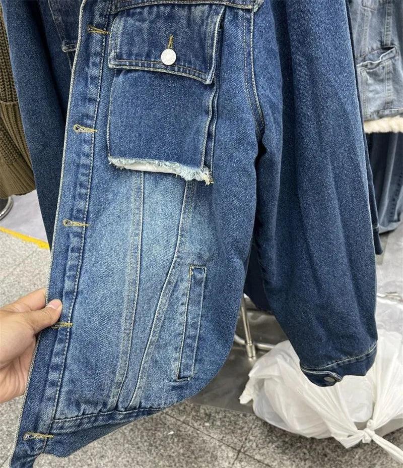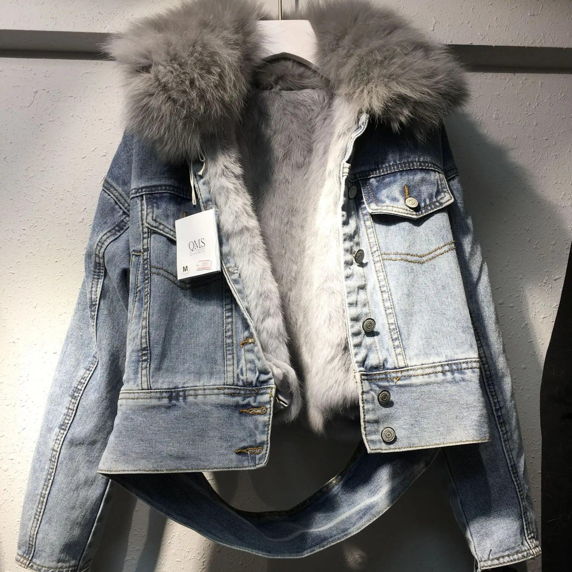 Real Fox fur thick warm denim parkas female winter coat