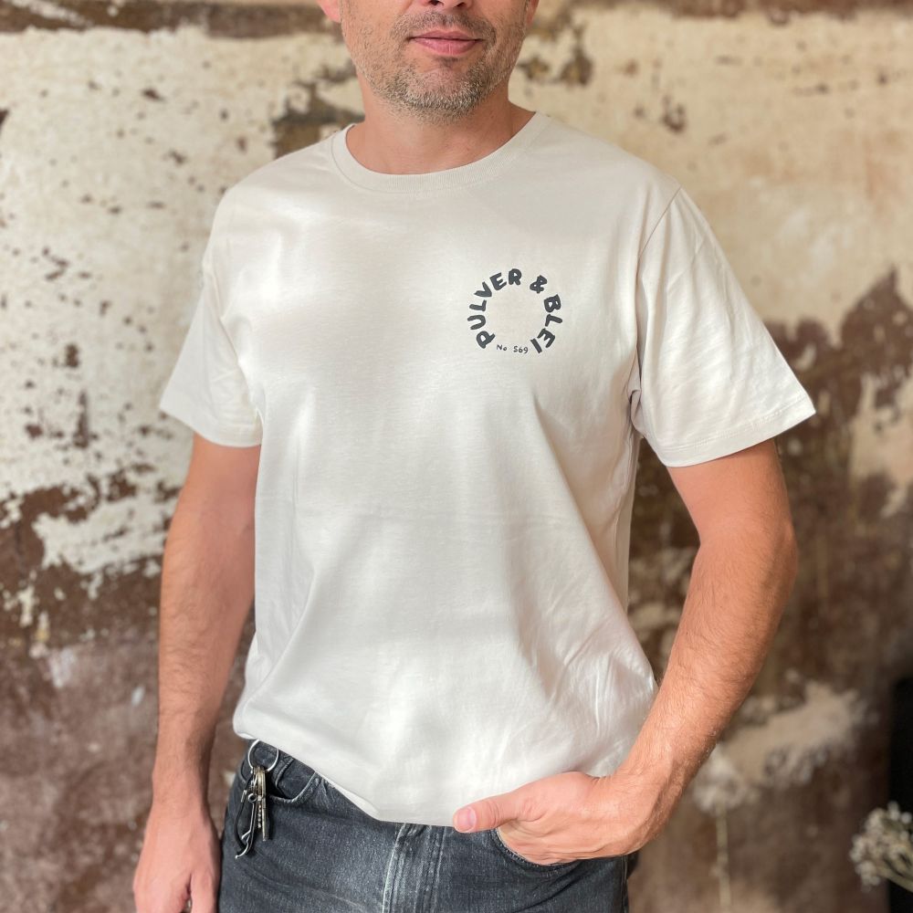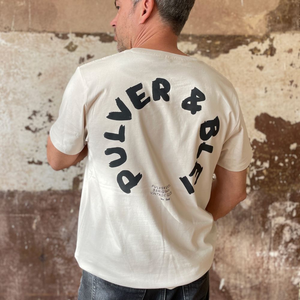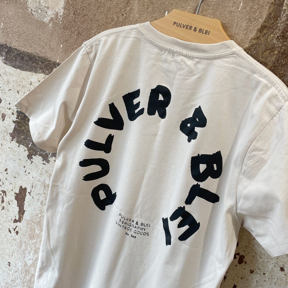 Pulver & Blei in seinem Segment. Handgeschriebene Schrift im Pinseldesign auf gewaschener Baumwolle für den besonderen Used-Look. Unisex-Tshirt aus schwerer Biobaumwolle im Regulär-Fit. Limited Edition