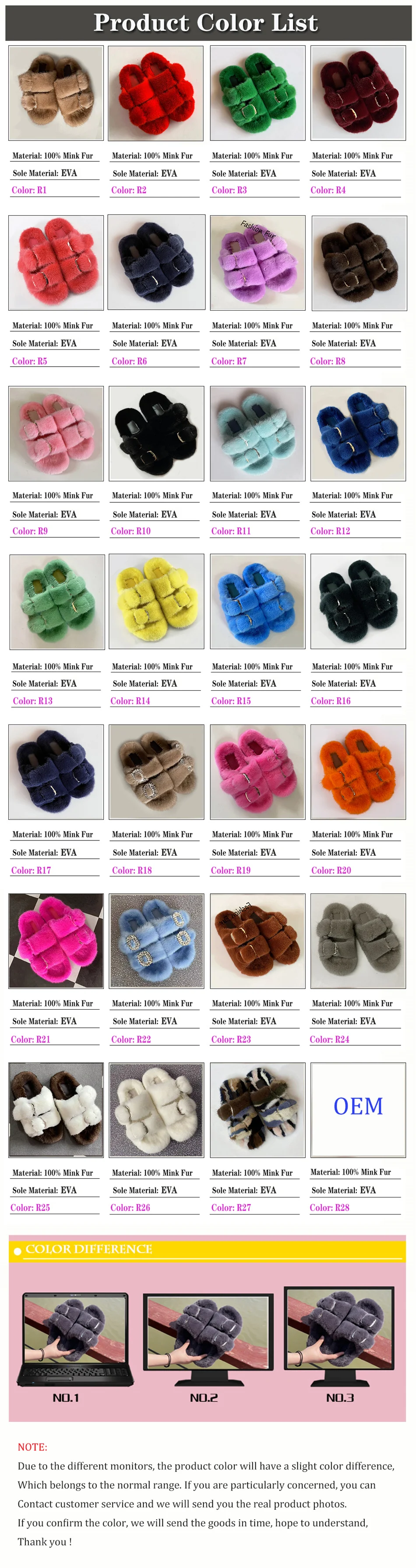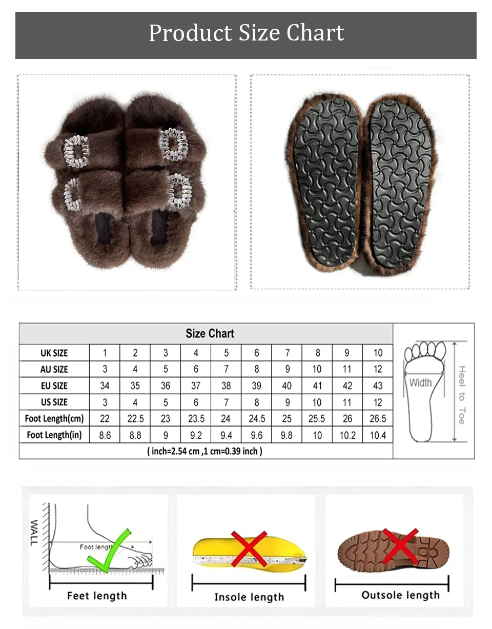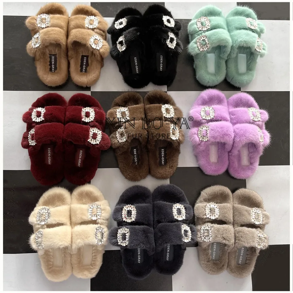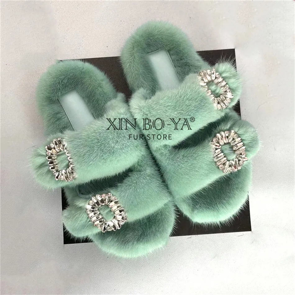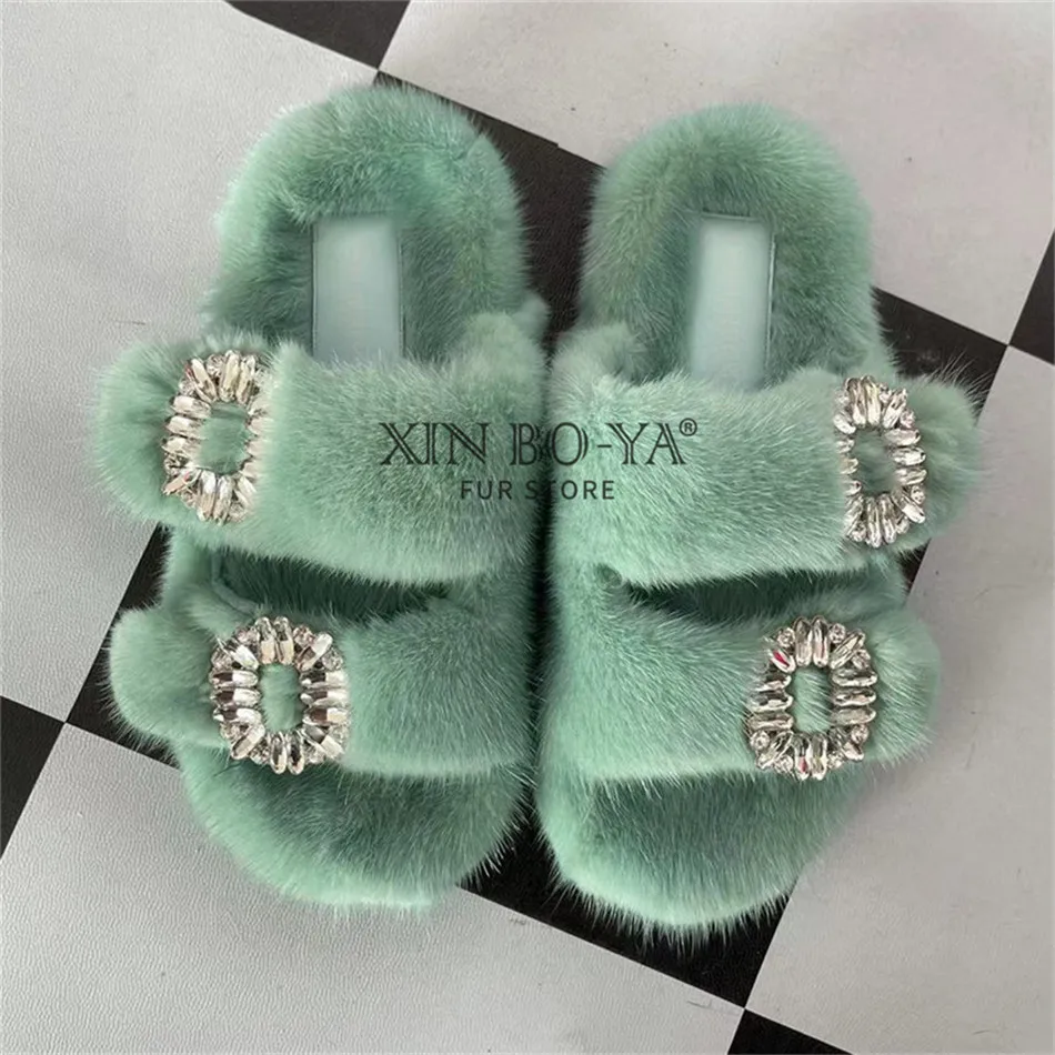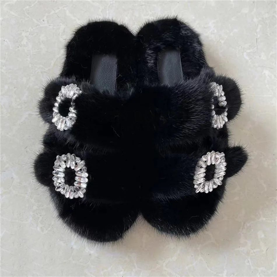 Luxus Nerzfell Hausschuhe Damen 100% | Flauschige Sandalen Flach Premium