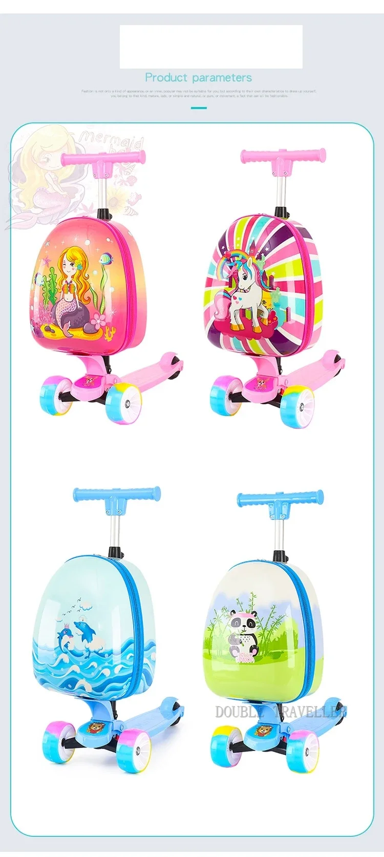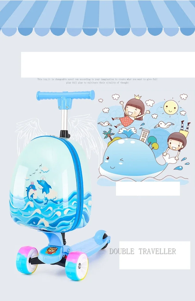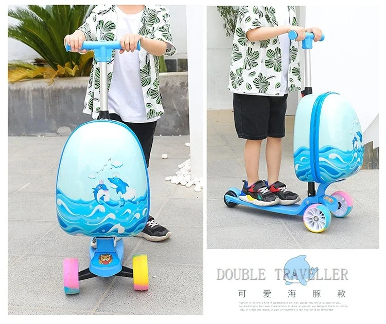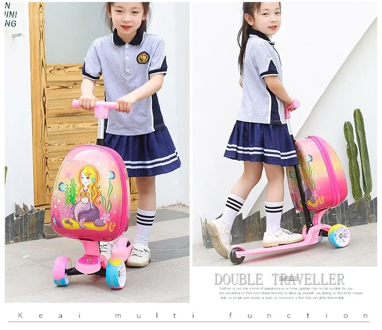 🎒 Was ist es - Entdecken Sie unser neues, süßes Kinder-Scooter Gepäck, das als Trolley-Gepäck genutzt werden kann! Perfekt für kleine Abenteurer, die ihre Sachen mit Stil transportieren möchten. Hergestellt aus hochwertigem PE-Material, ist es leicht und strapazierfähig.