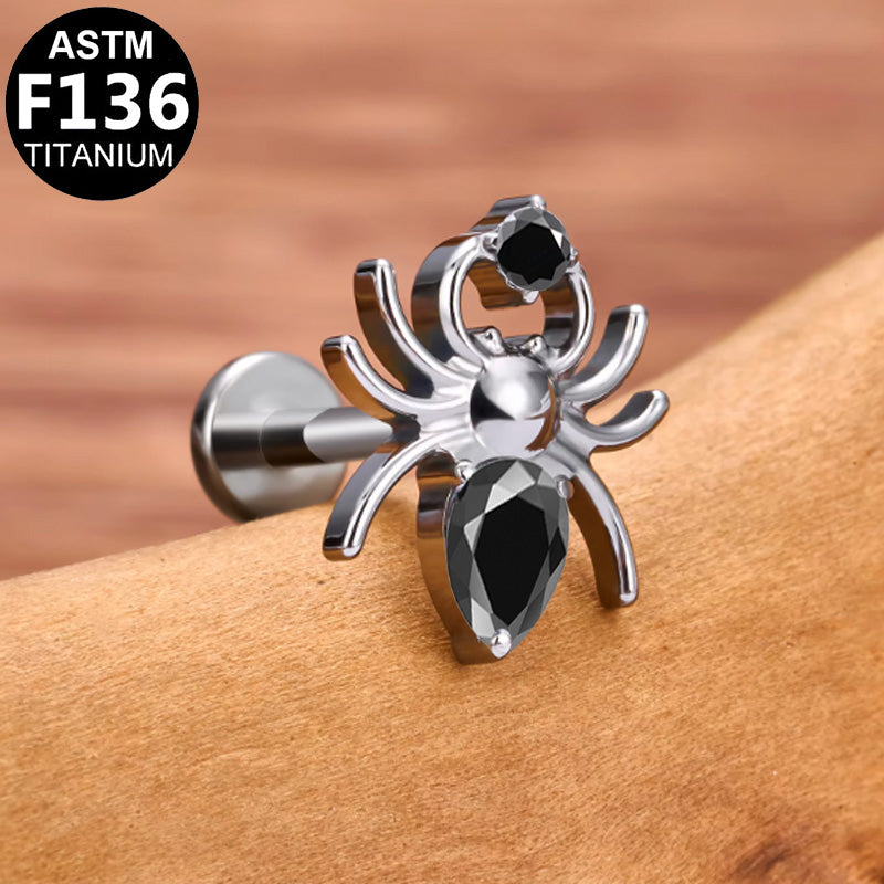 Ein auffälliges Design für alle, die ein Statement setzen wollen: Das Labret „Black Widow“ vereint ASTM F136 Titan mit einem markanten Spinnen-Motiv und tiefschwarzen 5A Zirkonia. Dank der präzisen Verarbeitung und dem Innengewinde ist dieser Stecker nicht nur ein Blickfang, sondern auch hautfreundlich und angenehm zu tragen.